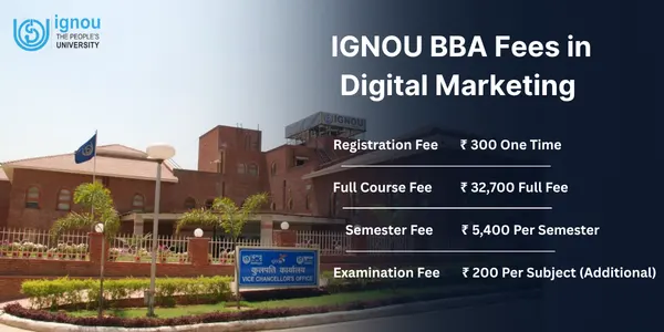 The fee structure of online BBA in digital marketing from IGNOU is affordable and accessible to several students, and costs Rs 31500 for the entire program, excluding registration and examination fees.