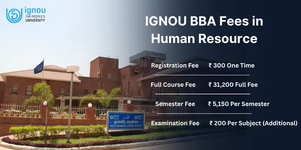 The total fee of an online BBA in Human Resource Management at IGNOU is approximately Rs 35000, that includes 6 semesters. One-time registration fee, development fee and examination fee per subject are additional.